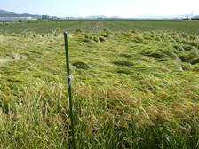 学びの田圃では、稲が倒れています!